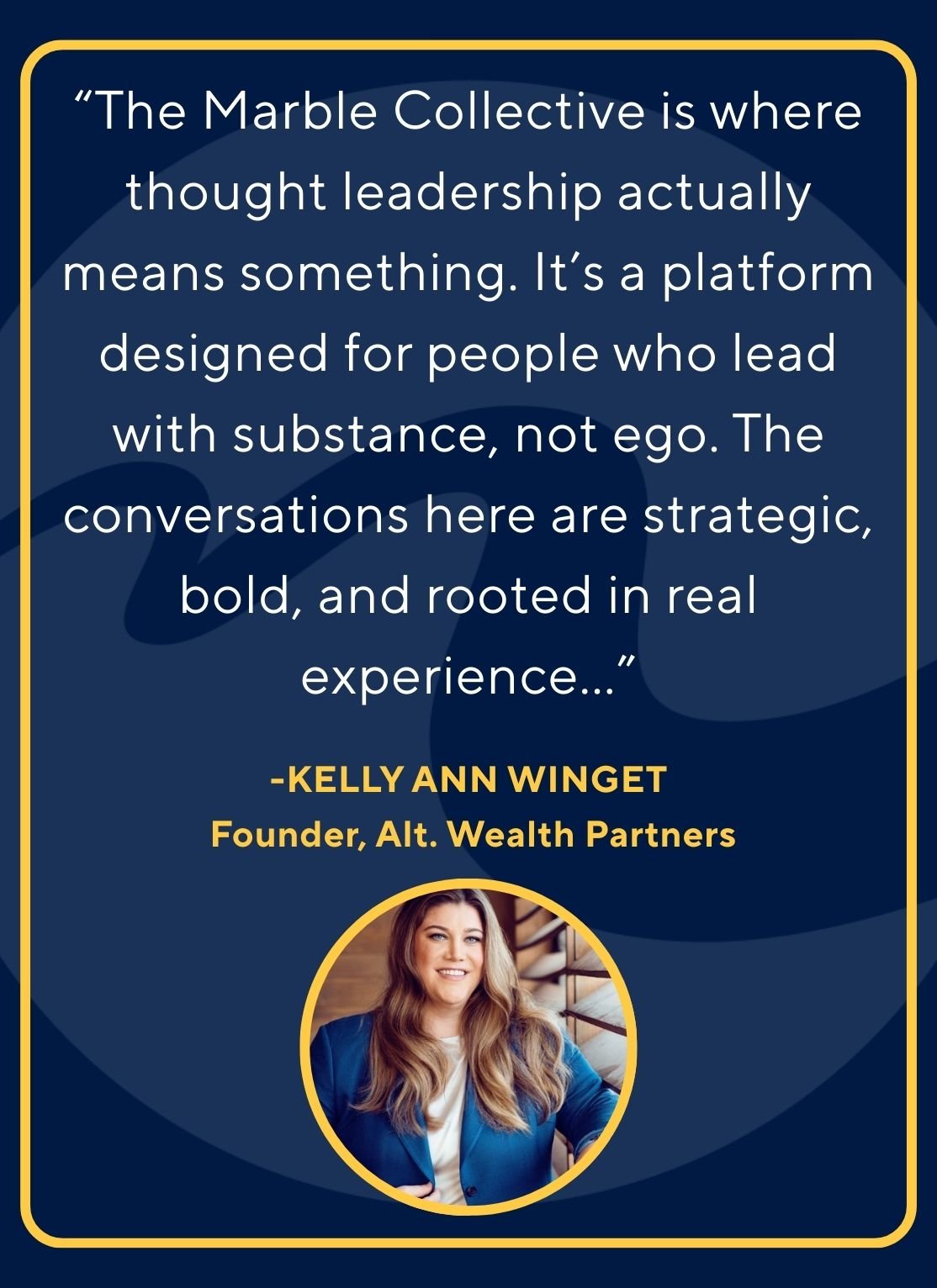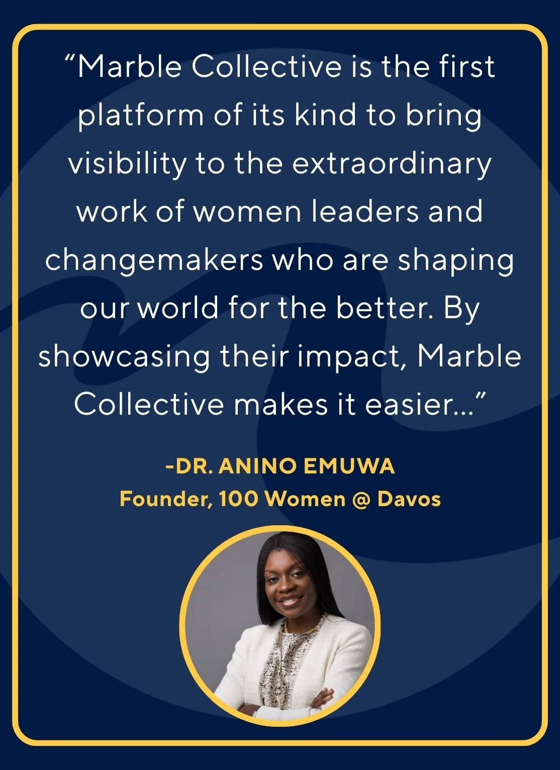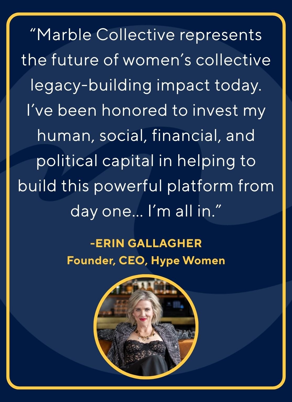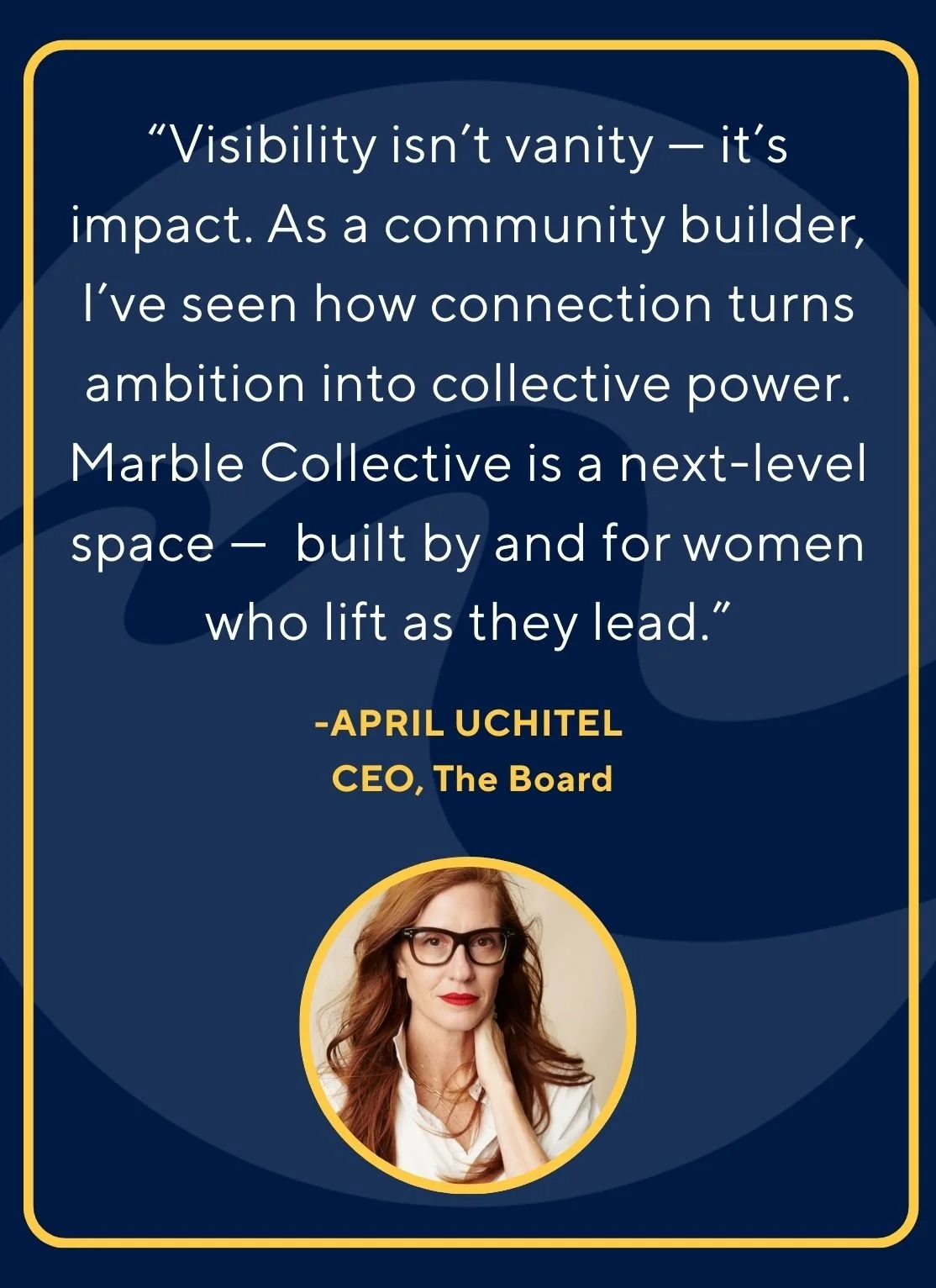 Marble Collective exists to connect and amplify the world’s most extraordinary women. You are the founders, executives, investors, scientists, artists, athletes, and change-makers whose work defines leadership.