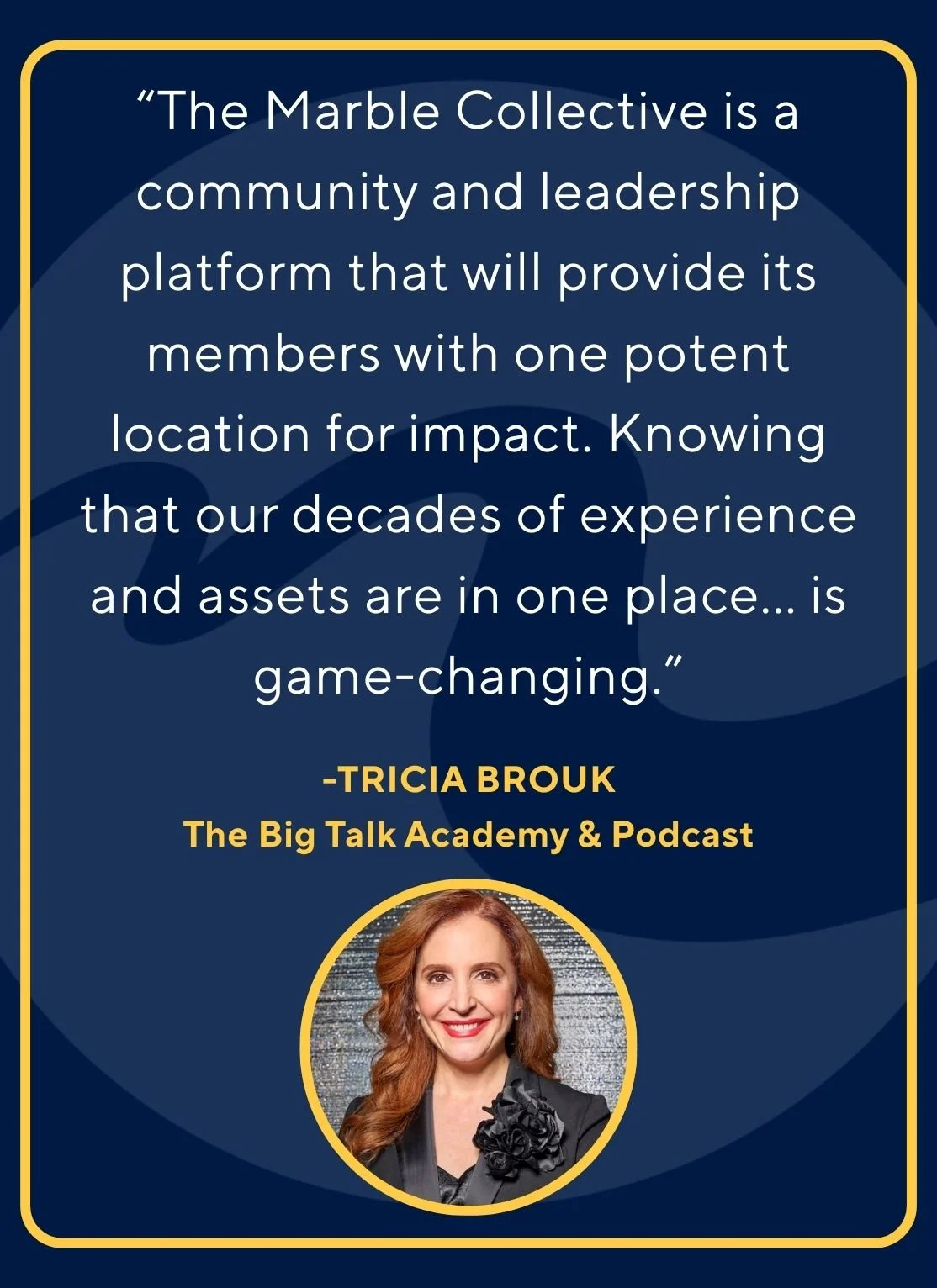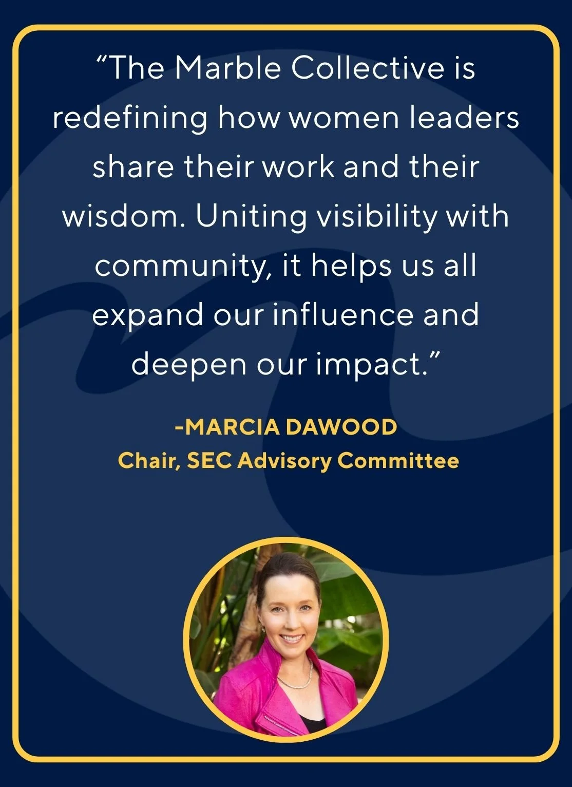 Marble welcomes leaders positioned to serve as role models through media, speaking, panels, and public platforms, expanding access to women’s leadership where ideas and decisions are shaped.