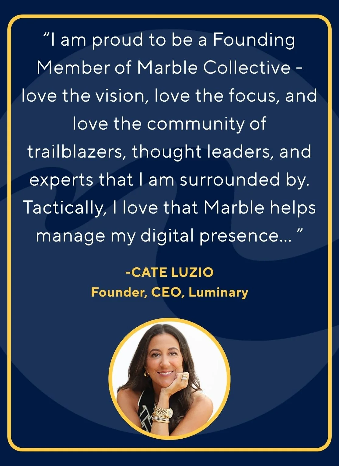 Marble Collective is a curated network of remarkable women and non-binary leaders shaping culture, industries, and lasting legacy. Our members are influential leaders whose work and stories are meant to endure, remain discoverable, and continue to inspire.